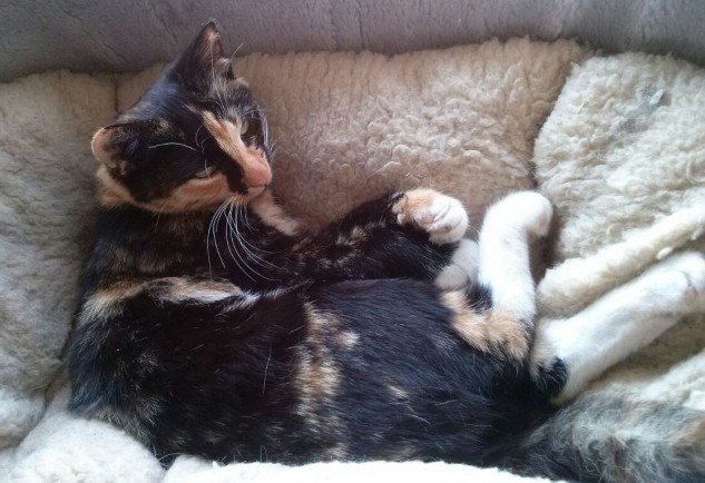 Trīskrāsu laimes kaķenīte turpmāk samurrās laimīti savai jaunajai saimniecei. Veiksmīti abām meitenēm!