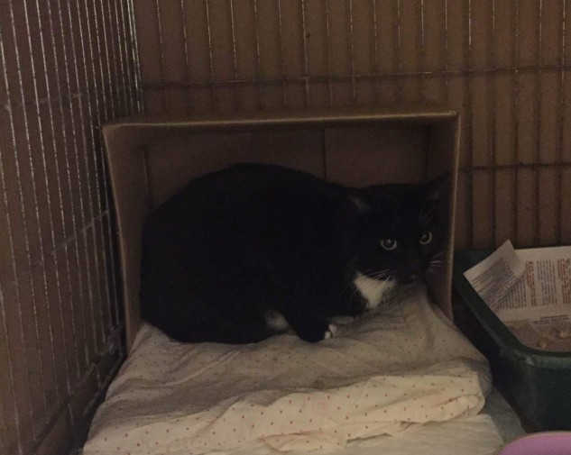 Melni baltā , 4 gadus vecā Ulubeles kaķenīte šodien satika savu ģimeni un devās saimniekot uz savām jaunajām mājām tepat Rīgā.