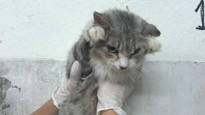 Laimīga kaķu meitene pameta šodien Ulubeles patversmi un devās uz jaunajām mājām Rīgas centrā.