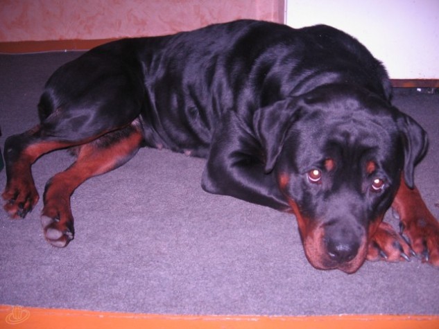 Rotveileru meitenīti, atgriezusies pie saimnieces sveika un vesela.