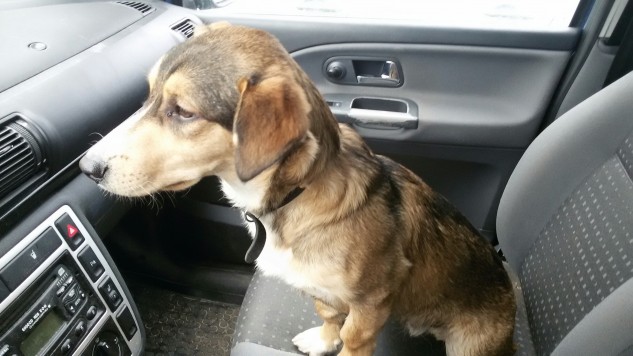 Salvadors laimīgi atgriezies pie savas saimnieces.