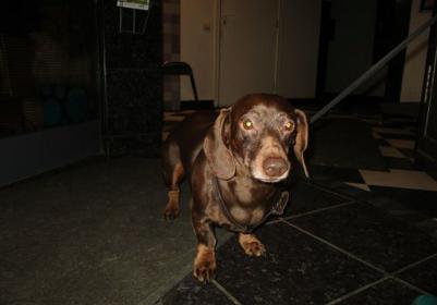 Laimīgais takša veida suņuks atgriezās pie sava saimnieka. :)