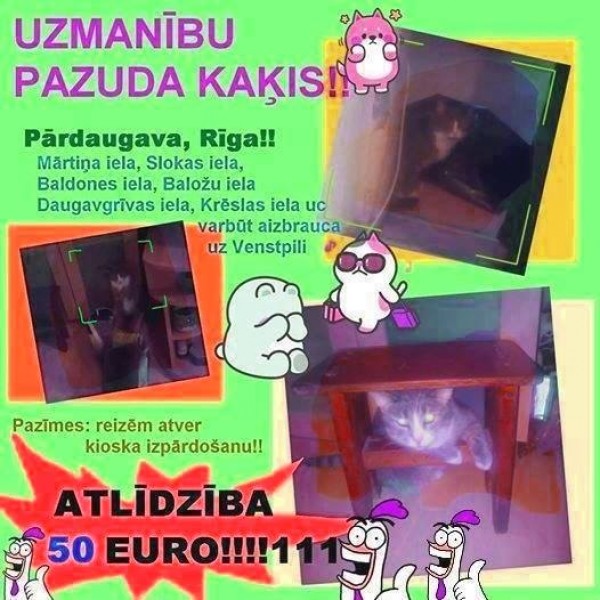 Sūtiet lūdzu visus pelēkos kaķus un paskatieties arī savā pagalmā ne tikai bildes adresēs 27802096