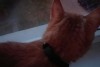 Pazuda kaķenīte rudā krāsā ar melnu siksniņu ap kaklu