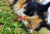 Pazudusi trīskrāsaina (ruds, melns, balts) mājas kaķene Mīce.