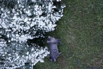 Ap kaklu zaļa siksniņa.Bailīgs.