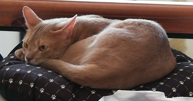 Kažociņš - kanēļa krāsā, acis dzintara krāsā. Ļoti mīlīgs, var būt nobijies un meklē vietas, kur noslēpties.