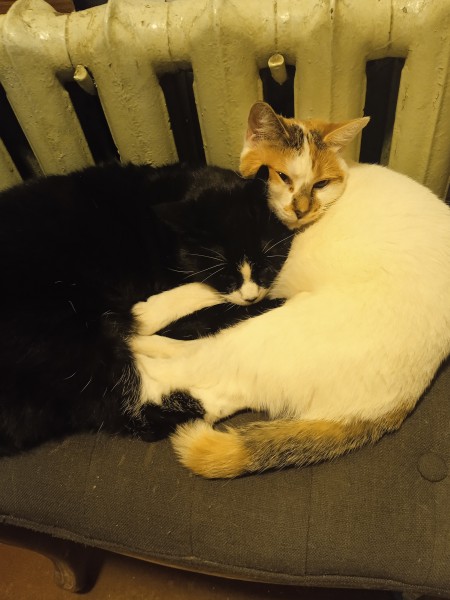 Meitenīte Minna. Vairāk baltā krāsā, ir rudi un brūni pleķīši, un melni radziņi uz galvas. Loti maziņa un bailīga. Iespējams, ka kaut kur paslēpusies.