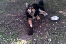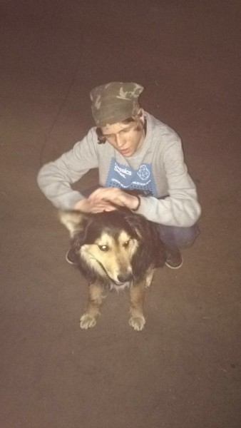 Atsaucas uz vārdu Bruno, ļoti draudzīgs, diezgan maza auguma, pūkains, viena auss stāv augšā, krūtis ar baltu spalvu, brūnas ķepas un pārējais ķermenis , izņemot seju - melns/tumši brūns
