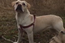 labradora sajaukums ar stafordu, neliela auguma, izskatās kā jauna kucīte,18 kilogrami, vēdera rajonā rēta pēc steralizācijas.atsaucasuz vārdu Sara.
