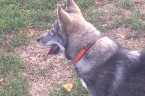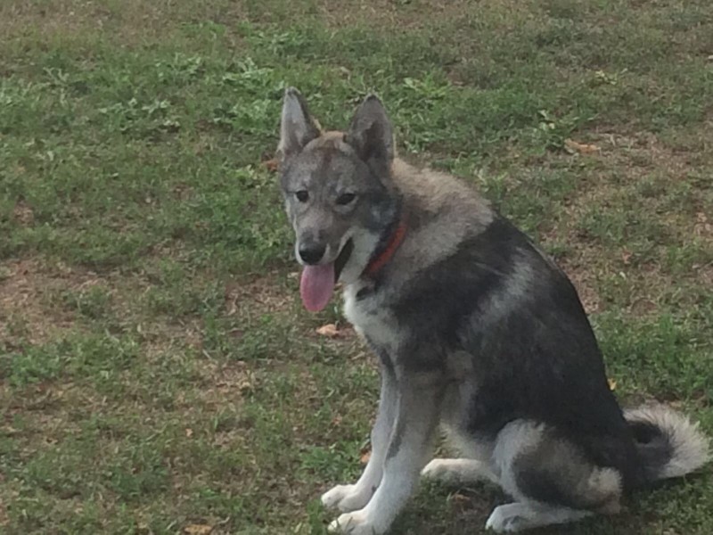 Rietumsibīrijas laika, krāsa pelēka ar baltu. Ir kaklasiksna ar uzdrukātu īpašnieka telefona numuru.