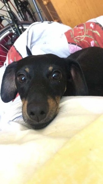 Такса.девочка.Чипа нет.Зовут Пона.