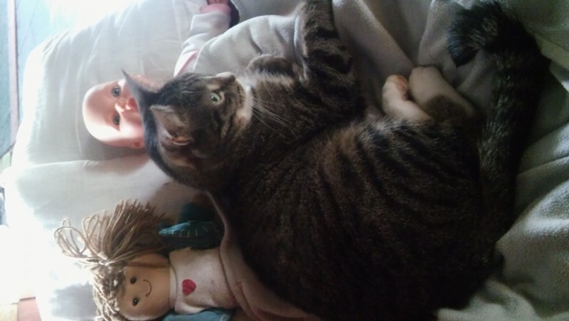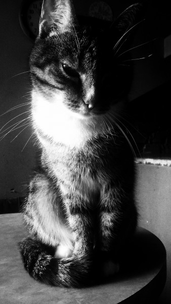 Pelēcīgi raiba ar baltām kājiņām. Visus 5.gadus ir bijusi istabas kaķis un pastāv iespēja kad ir diezgan agresīva.