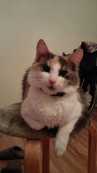 Trīskrāsaina, gaiša, smalkas uzbūves kakenīte, bailīga, atsaucas uz vārdu Glaša.
