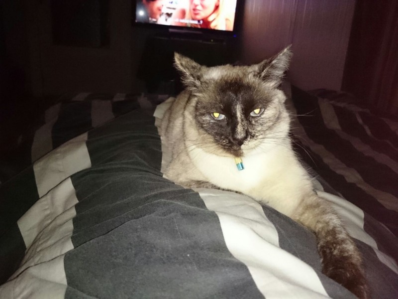 Labi kopta un mīļa kaķene līdzīga siāmas šķirnes kaķiem, dzīvoja gan istabā gan pastaigājās laukā.