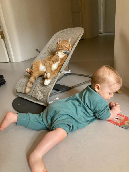 Rižs, baltas ķepiņas un vēders. Oranžas acis, rozā deguntiņš.