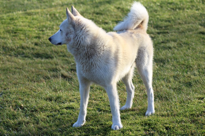 Balta Rietumsibīrijas laika, ap kaklu dzeltena kakla siksna.