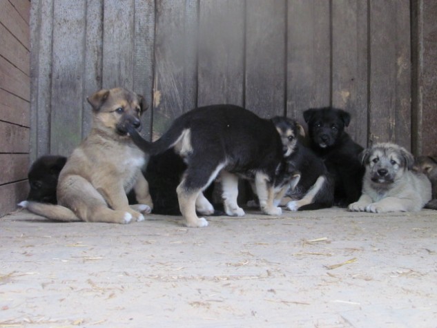 Krimuldā Traktordienās noskatītais gaiši brūnais suņu puika no Ulubeles kuplā kucēnu bariņa ir devies mājup uz Alojas novadu, kur to jau gaida draiska laikas suņu meitene! Mazsuņu pulciņā bildējoties, pirmais no kreisās ir tas, kurš dodas mājup :)