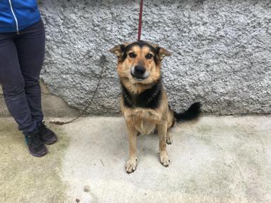 Laimīgais suņu puika atgriezās pie sava saimnieka.