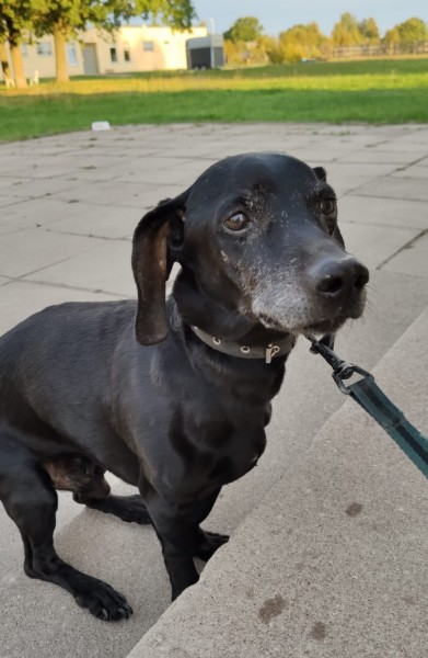Melns, sirmot sācis, taksim rados esošs suņuks, atkal bez čipa un reģistra. 29.08.19 atrasts Dobelē, Elektrības ielā. Īsto saimnieku nesagaidījis, pie mums cerēs uz jaunas dzīves sākumu