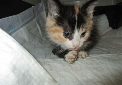 Laimīgais trīskrāsu kaķēns ir pametis dzīvnieku pansiju un devies uz mājām. :)