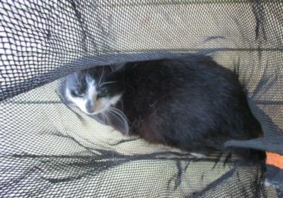 Laimīgā melni balta kaķene atrada sev jaunu saimnieku un tagad dzīvos Mazsalacā.