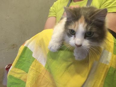 Laimīga kaķenīte šodien pameta Ulubeli un devās jaunajās mājās Madonas novadā.
