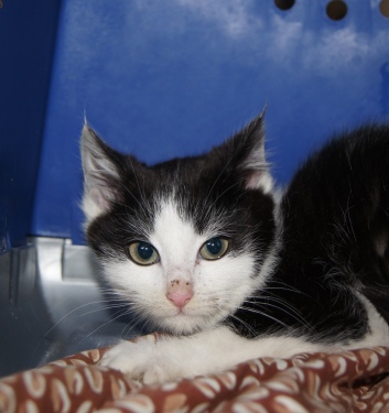 Mazā melnabaltā Ulubeles kaķu meitenīte šodien sastapa savu jauno ģimeni. Mincīte turpmāk saimniekos Ogrē.