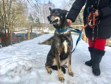 Laimīga suņu meitene Fizi pameta Ulubeli un devās uz jaunajām mājām Ādažu novadā.