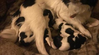 Laimīgais kucēns pēc revakcinācijas devās uz jaunajām mājām Ozolnieku novadā.