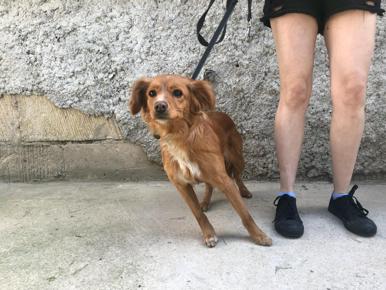 Laimīga suņu meitene ar jaunu vārdu Smilga šodien devās uz jaunajām mājām Rīgas centrā