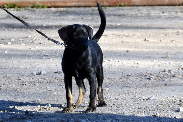 Mazā suņu mietene atradusi jauku saimnieci, kura četrkājaino draudzeni lolo un lutina.