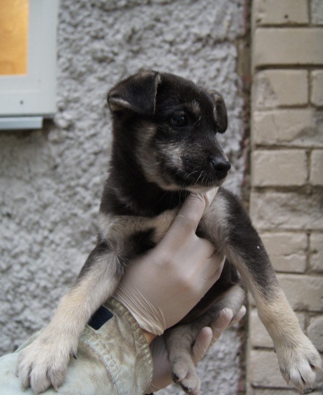 Mazā kucēnmeitiņa šodien tika nosaukta par Buču un ieraususies klēpī jaunajiem saimniekiem devās uz mājām Rīgā.