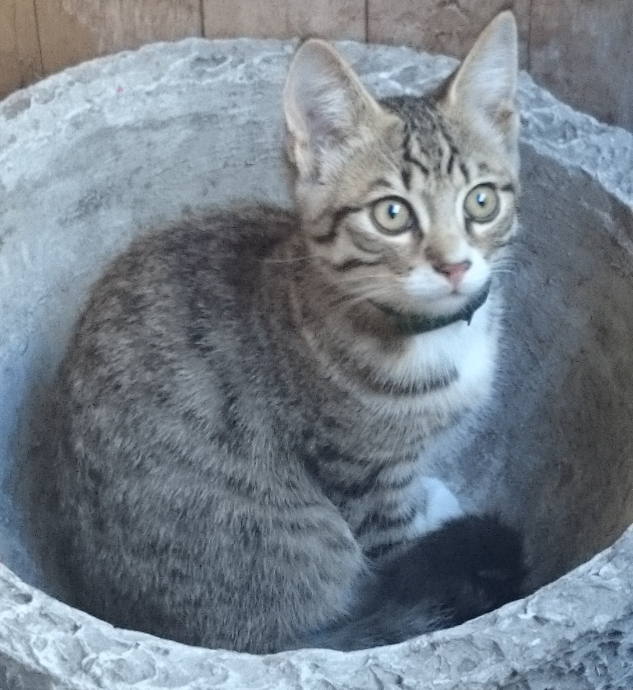 Был в подвале, соседка с соседнего подъезда услышала, очень громко мяукал под дверью подъезда.