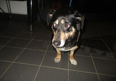 Laimīgais suņu puika ir atgriezies uz mājām.