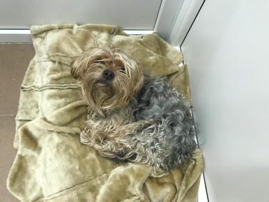 Laimīgais Jorkšīras tipa suņu puika pameta Ulubeli un atgriezās pie sava saimnieka.