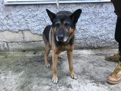 Laimīgais suņu vīrs ir atgriezies pie savas saimnieces atpakaļ mājās.
