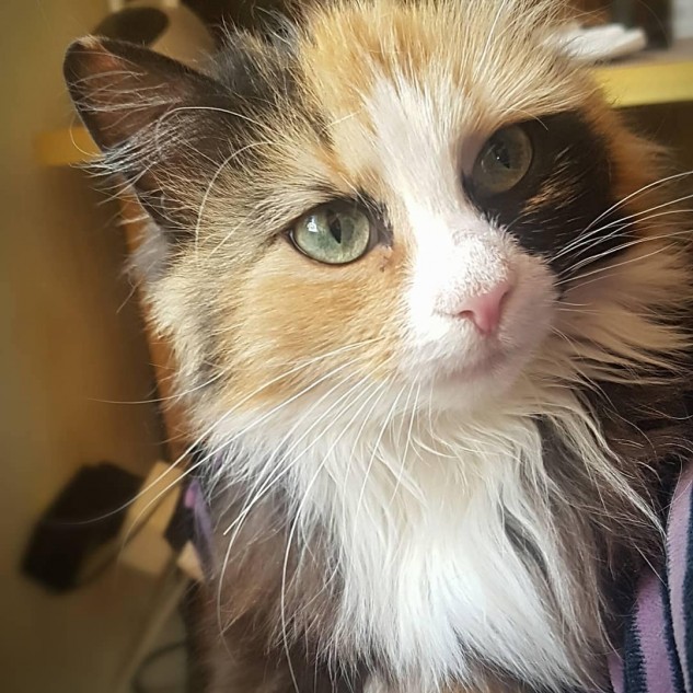 Kaķene tagad dzīvo Liepājā, ģimenē ar bērniem un viņu sauc Aiza.