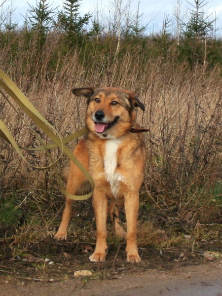 Saules krāsas sunīte. Augumā vidēji liela. Enerģiska. Draudzīga ar cilvēkiem. Citi suņi izvēles kārībā.