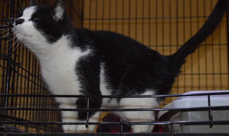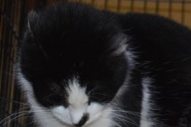 Runcītis, melns ar baltu, mīlīgs, tīrīgs.