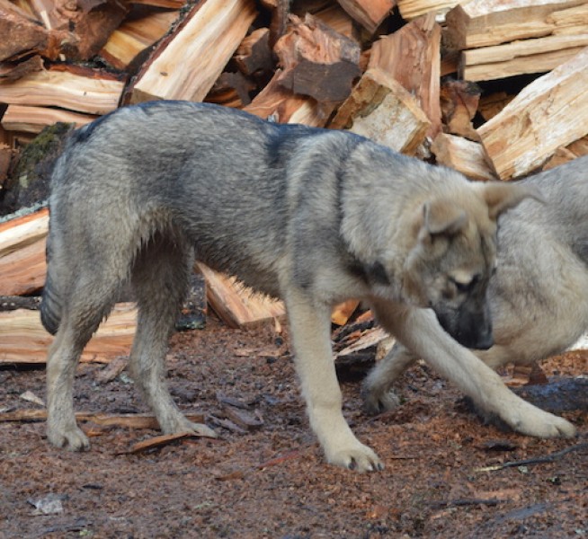 Apmēram 4 mēnešus veca vilciņa tipa sunīte, atbilstoši vecumam draiska, rotaļīga, kustīga.