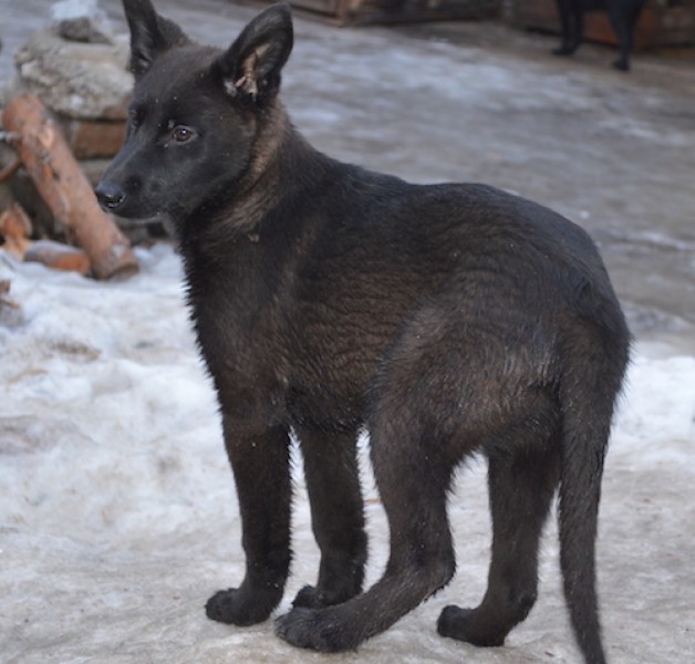 3-4 mēnešus veca kucēnmeitiņa. Atbilstoši vecumam draiska, kustīga.