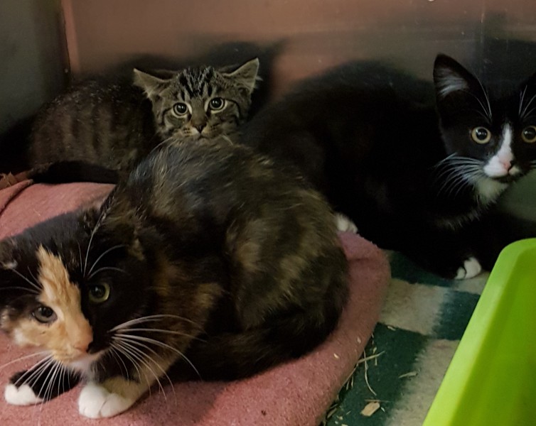 Smuki un bezgala sabijušies , apmēram 3 mēnešus veci, 2 māsiņas un brālītis. "Sekmīgi" sadzimuši pagalma kaķei Vecajā ceļā 53.