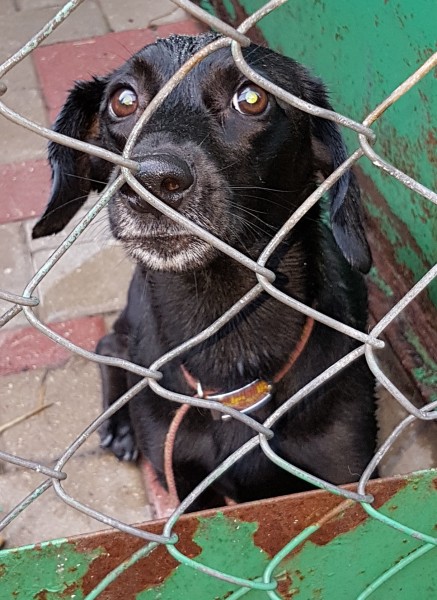 2 gadus jaunais šunelis - takšu radinieks, melns un ĻOTI dusmīgs uz mums par nonākšanu patversmē. Par staigāšnu bez cilvēka noķerts pie Maksimas veikala Olainē, Veselības ielā. Gaidām dusmupūķa saimnieku. Čipa nav, ir auduma kaklsiksna, sarkanīga