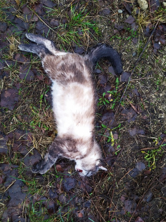 Sauriešos, Burtnieku ielā 34 atrasta mirusi kaķene. Saimniek, ja vēlies viņu apglabāt, zvani 25473333