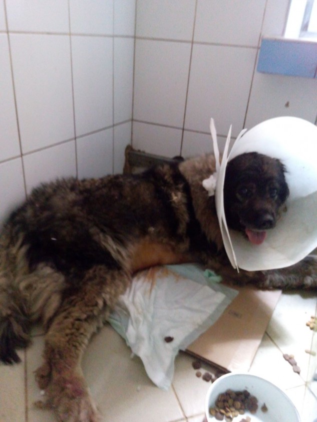 Viņu atrada uz ielas, tad viņa nonāca klīnikā, kur tika konstatēts audzējs. Viņas saimnieks nepieteicās un suņu Dieviņš lēma, ka ņems lielo suņu dāmu pie sevis.
