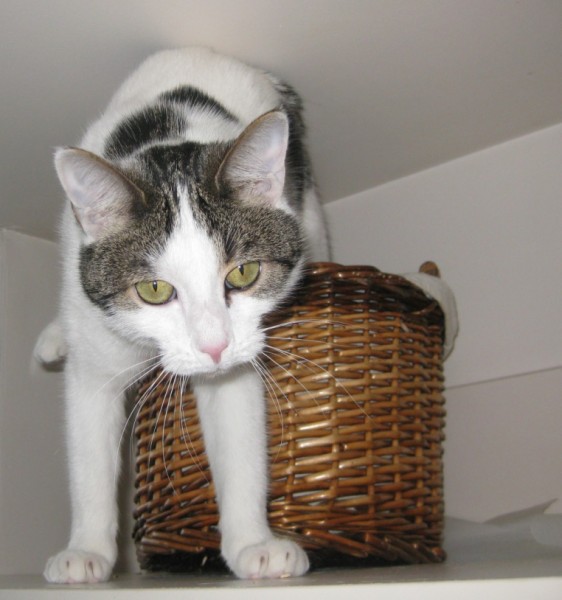 Pazudusi kaķenīte, balta ar melniem plankumiem. Atsaucas uz vārdu "Kisa".