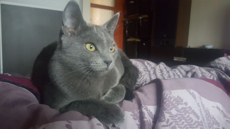 Sudrabkrāsas kaķenīte Pūce. Īpašas pazīmes- pie vienas austiņas mazliet īsāka spalva (bija izskūts, vēl nav ataugusi). Noteikti bailīga, jo laukā nav bijusi.