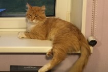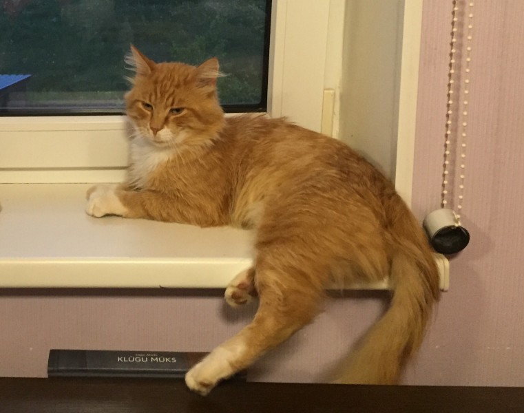 Ruds garspalvu runcis ar baltu krūtiņu un baltām ķepām
