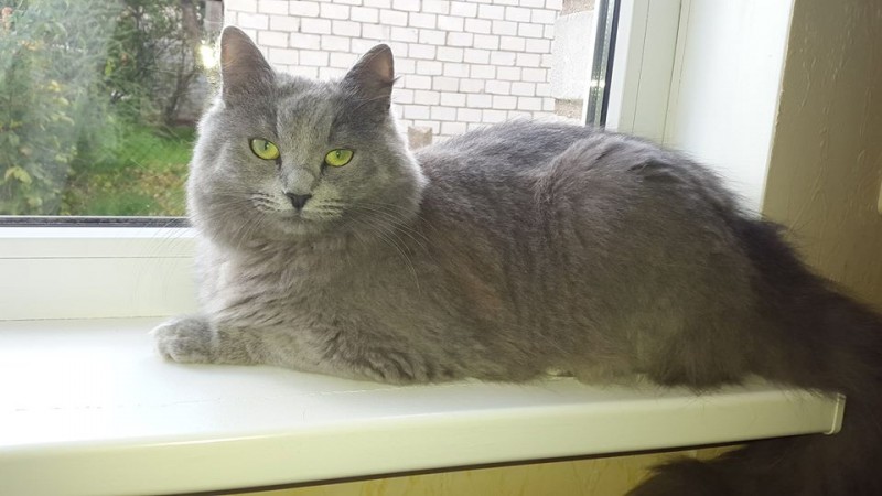 Maza mīļa kaķenīte. Zaļas acis, liela, pufīga spalva. Parasti uz trokšniem pieplakst pie zemes, patīk dažreiz līst iekšā vietās, kur nevajag. (Garāžās, šķūnos utt.) Attēlos labāk redzams! Kaķene sterilizēta, nekad nav bijusi negadījumos.